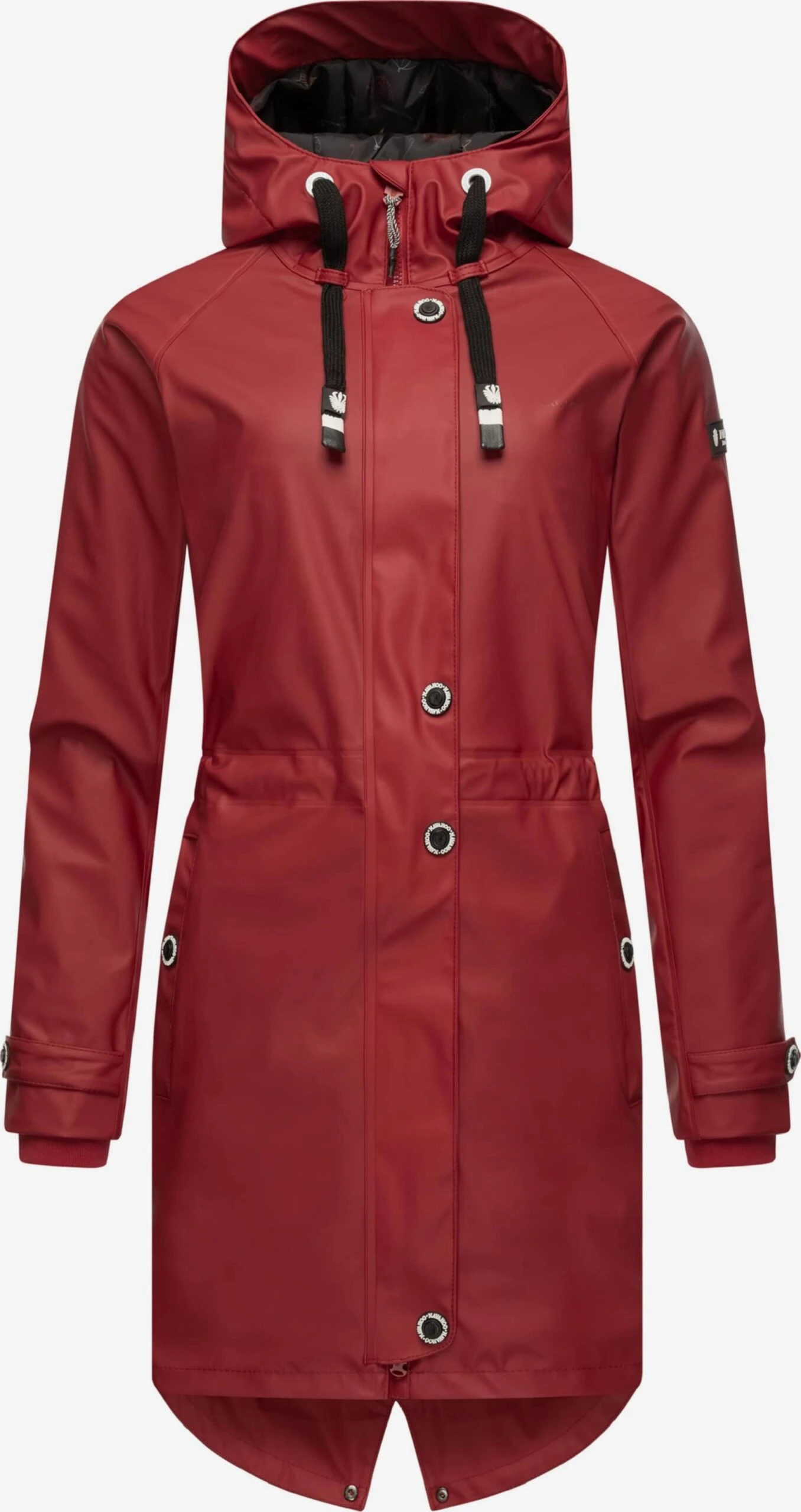 EffenRegenjasSplitCapuchon met trekkoordRaglanmouwenVerstelbare tailleLabel printLicht gevoerdRitssluiting